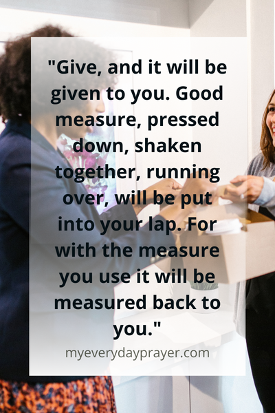 “Give, and it will be given to you. Good measure, pressed down, shaken together, running over, will be put into your lap. For with the measure you use it will be measured back to you.”